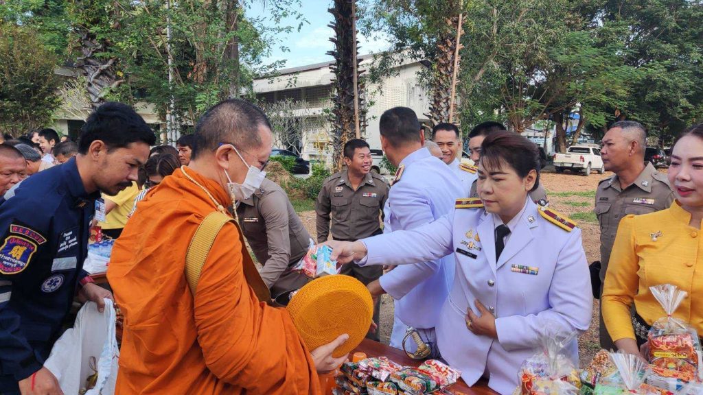 สภ.หนองหญ้าปล้อง ร่วมทำบุญตักบาตรเนื่องในวันพ่อแห่งชาติ