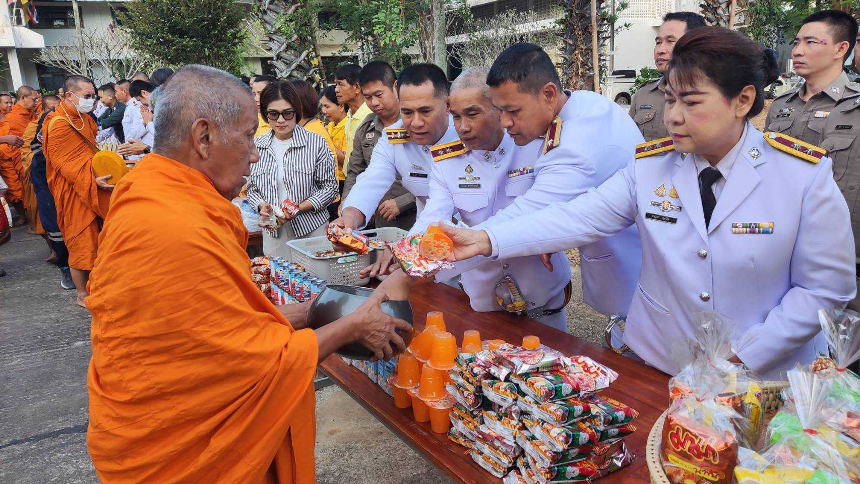 สภ.หนองหญ้าปล้องร่วมพิธีถวายภัตตาหารพระราชทานแก่คณะสงฆ์ธุดงค์